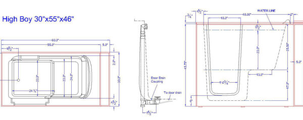 Tub Dimensions:30″W x 55″L x 46″H