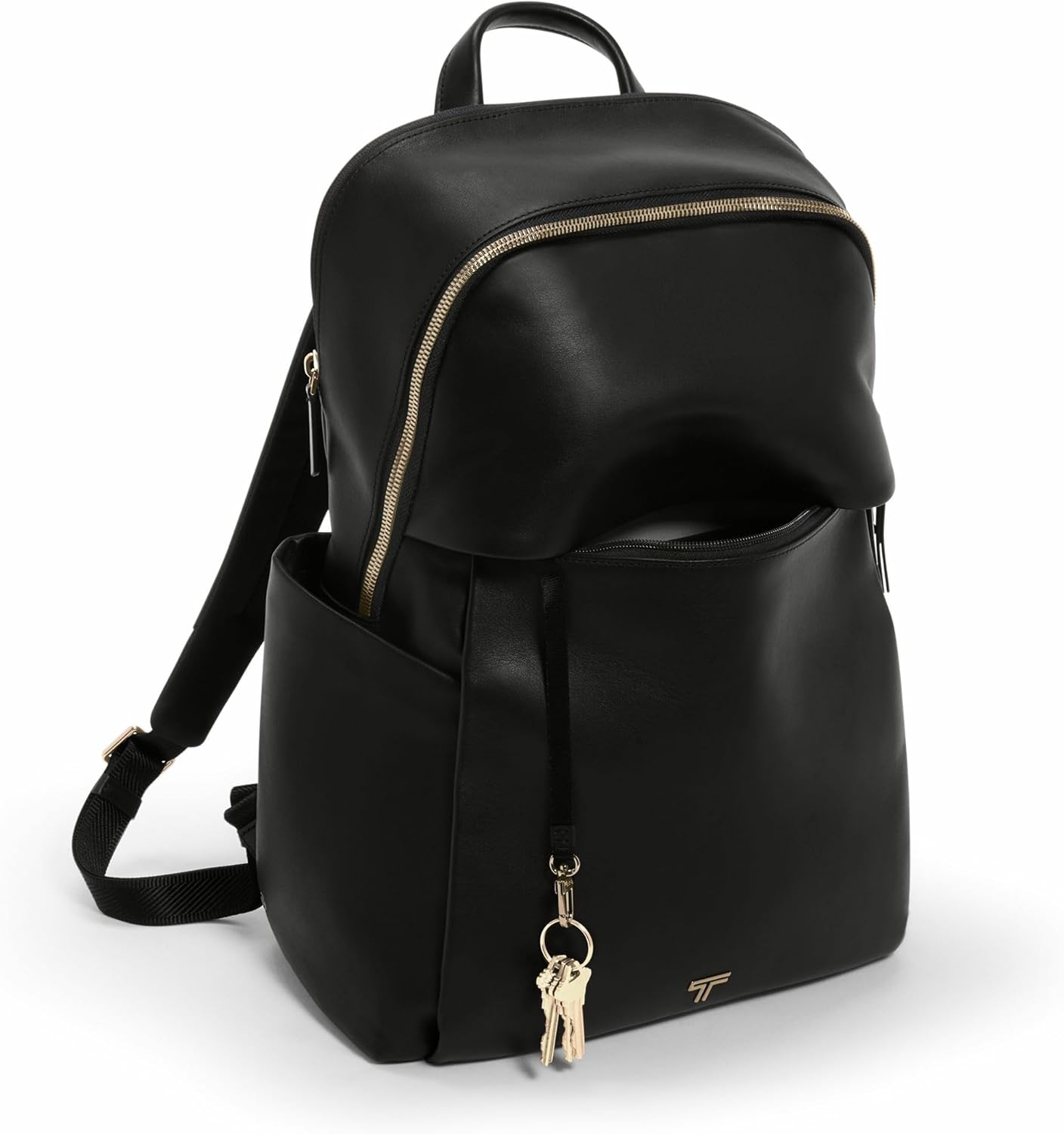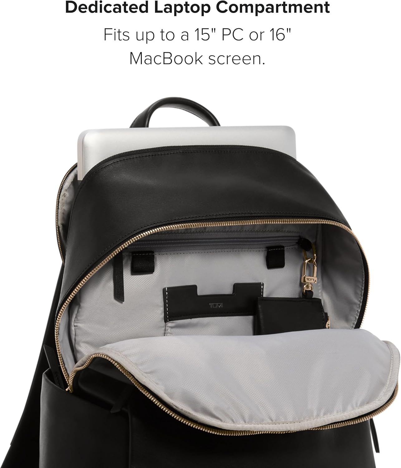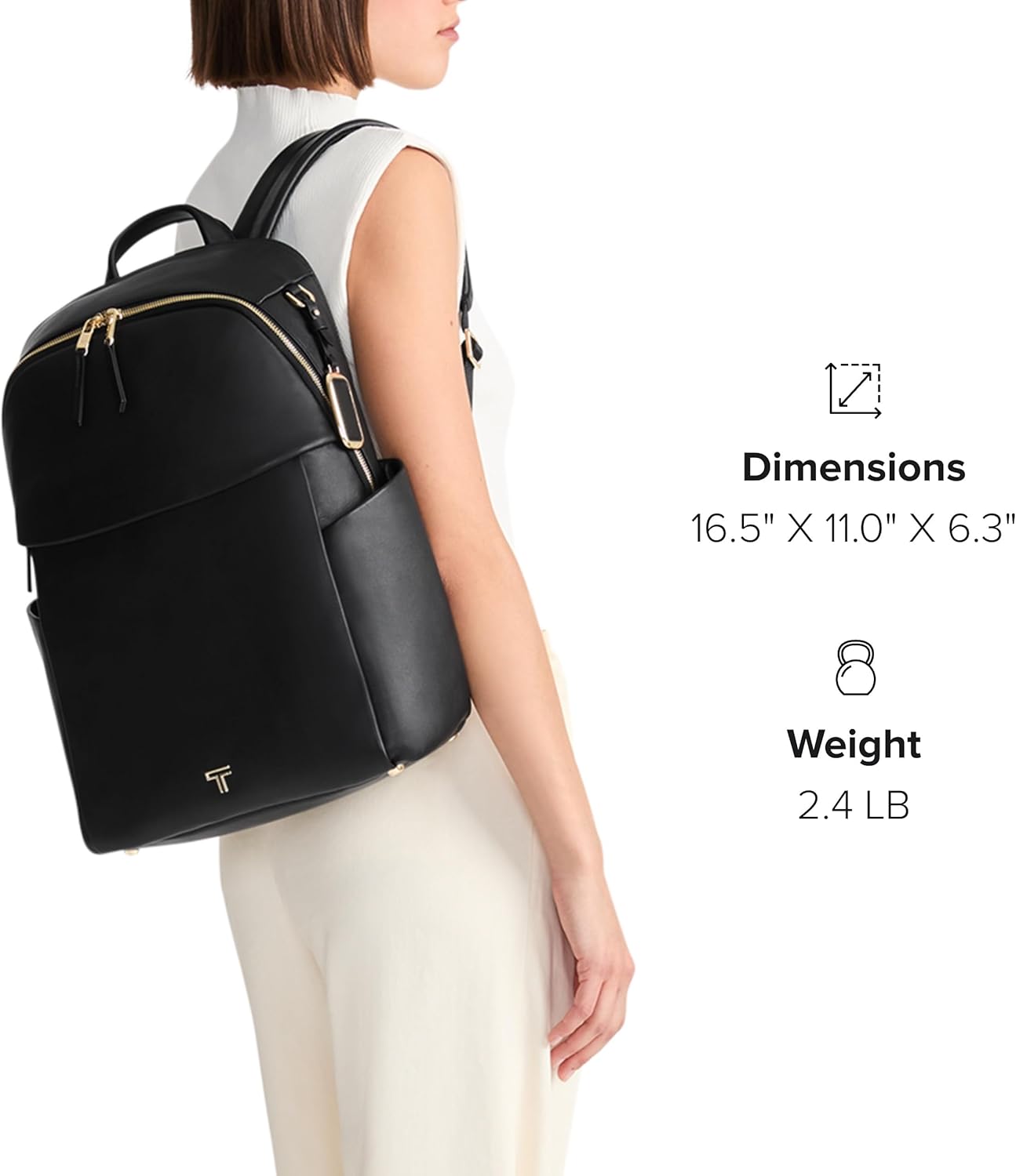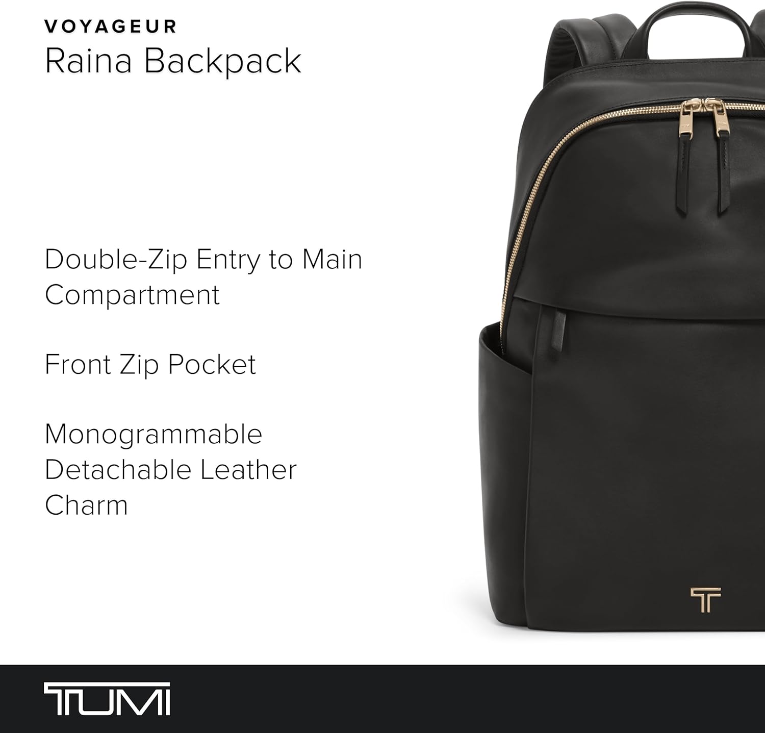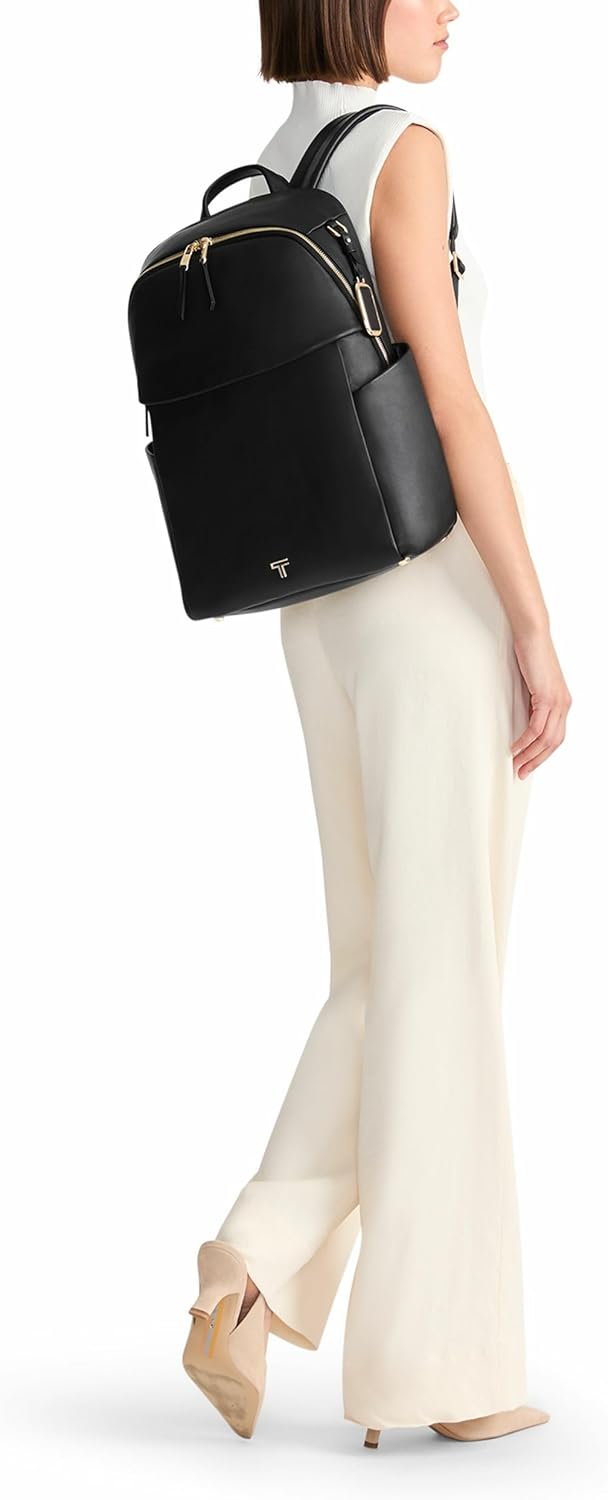 TUMI – Voyageur Raina Backpack – Women’s Premium Leather Backpack – Everyday Bag with Phone Pocket & Laptop Compartment – Black, Light Gold Hardware